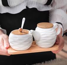 Porta Mantimentos de Cerâmica com Suporte Bambu - (Kit)