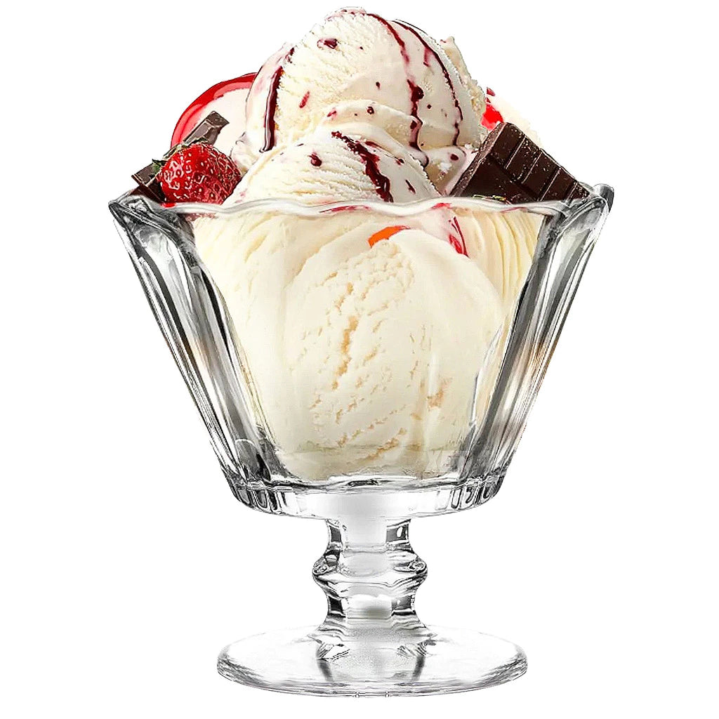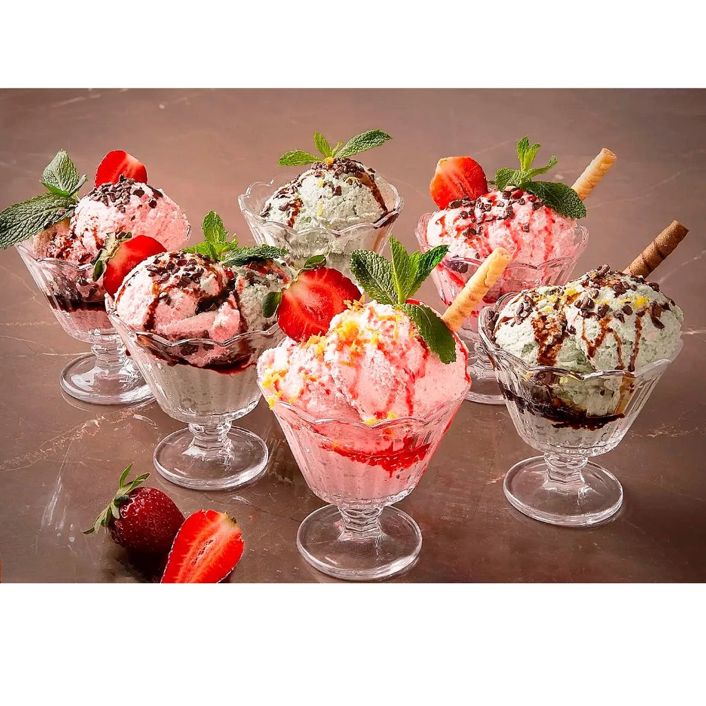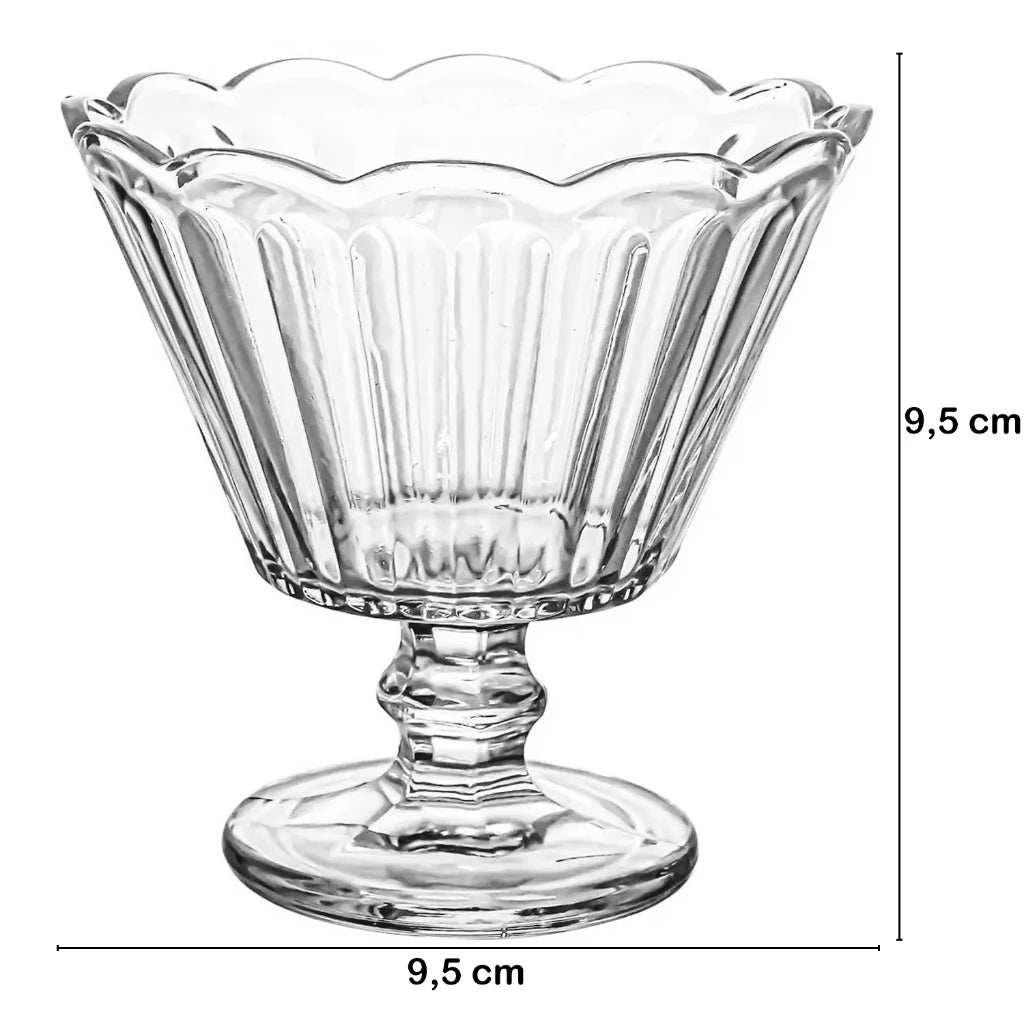 1) Ideal para servir sobremesas e sorvetes, em ocasiões especiais e também no dia a dia. 2) Produzidas em vidro com alto brilho. 3) Transparência e possuem um design trabalhado que vai dar um toque de classe à sua sobremesa.