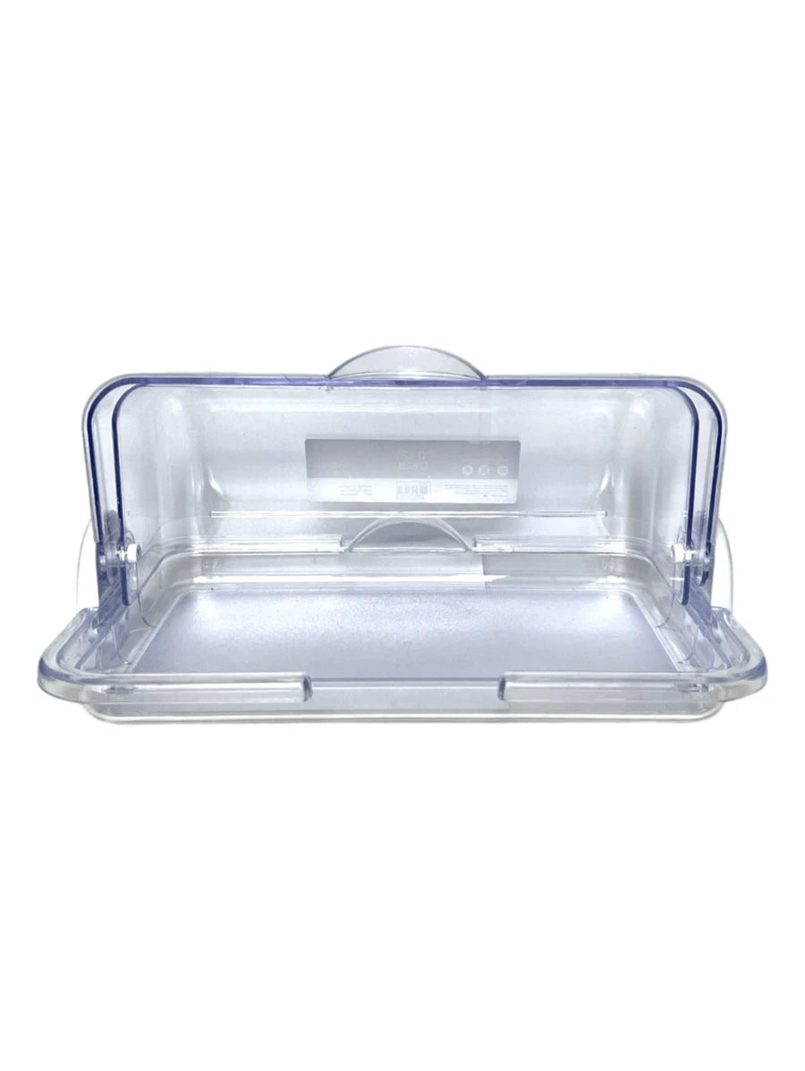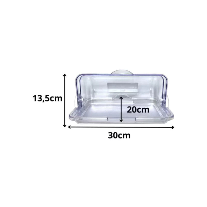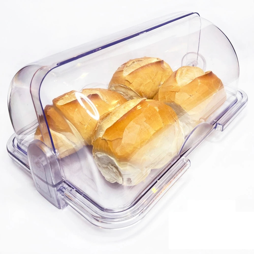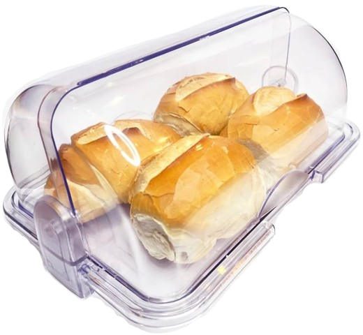 - A transparência do acrílico permite visualizar os alimentos dentro do porta-pão sem precisar abri-lo, ajudando a evitar desperdícios e facilitando a organização.
