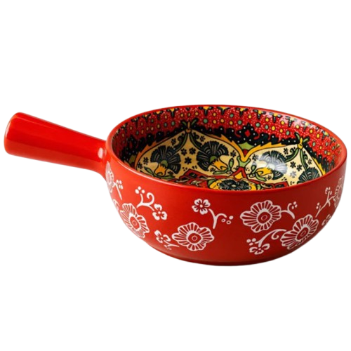 “Surpreenda na mesa com a panela artesanal de cerâmica com mandala interna — uma peça única que transforma refeições prontas em momentos cheios de beleza, energia e encantamento.”