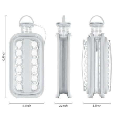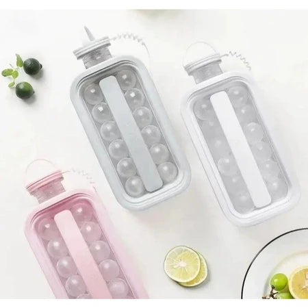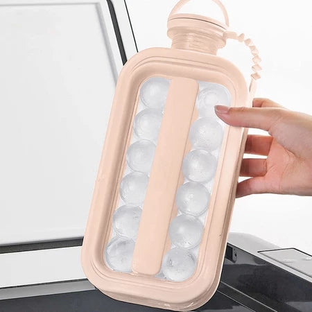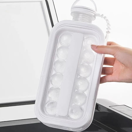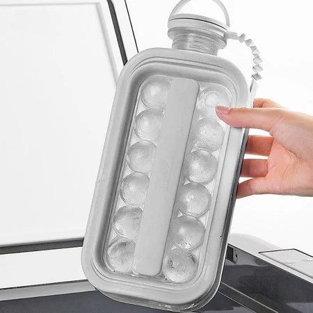 Versatilidade em Uso: Funciona como uma forma de gelo em esferas e como uma garrafa de água, proporcionando praticidade e economia de espaço.