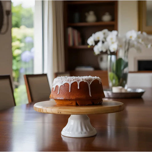 Prato Porta Bolo Madeira Cerâmica Rústico