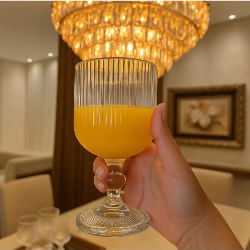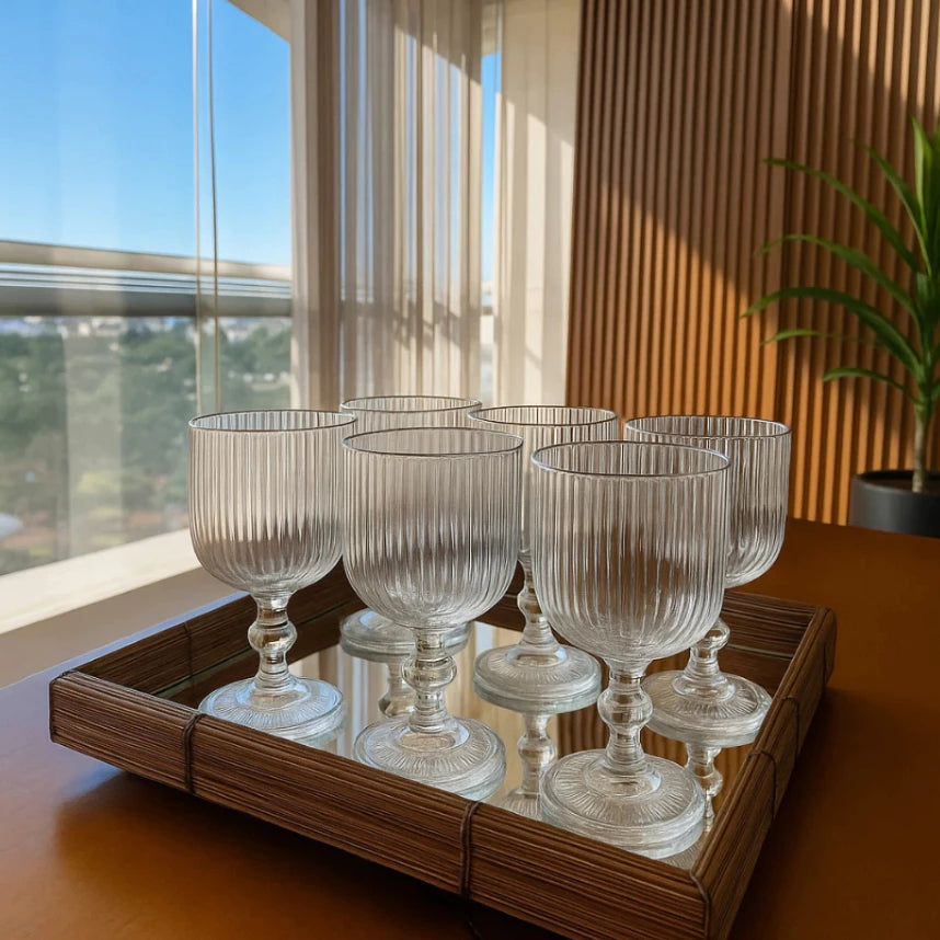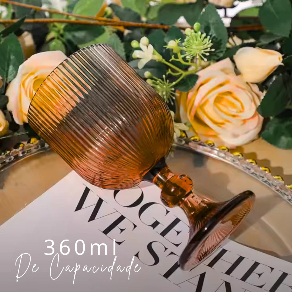 As Taças Caneladas Elegance, possuem uma textura refinada que realça a beleza do vidro âmbar, trazendo um toque de requinte à sua mesa.