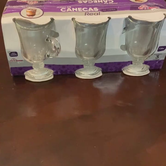 1) Conjunto completo: Canecas de vidro temperado com capacidade de 120ml, perfeitas para um cappuccino cremoso ou um café expresso aromático;