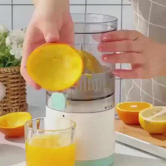 - Além disso, sua operação sem fio oferece liberdade total de movimento, permitindo que você esprema suas frutas favoritas em muitos lugares, onde você estiver!