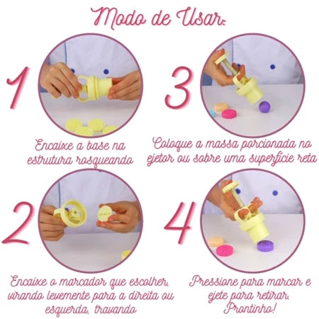Insira um carimbo no molde (o lado da estampa virado para fora), pressione suavemente a massa e seus docinhos ficarão uma verdadeira obra de arte.