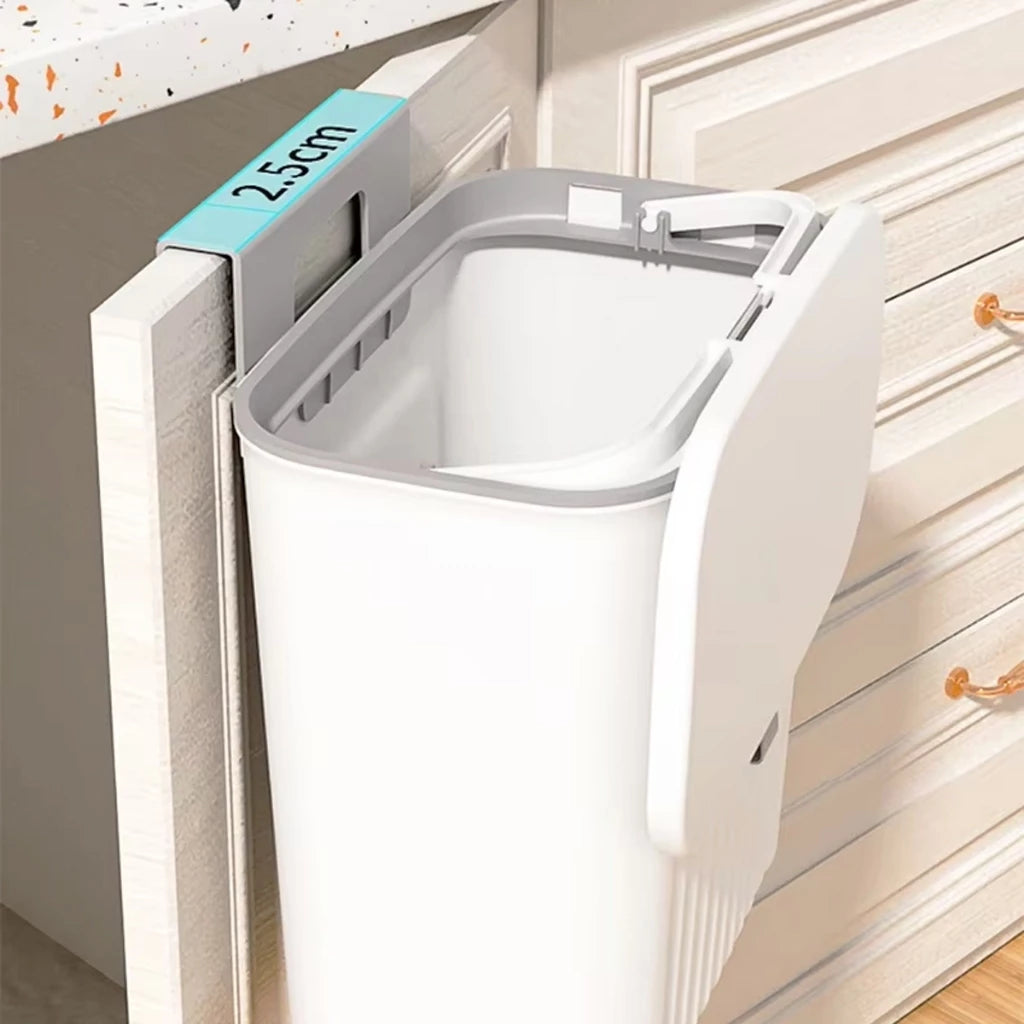 Uma Lixeira Suspensa Retrátil é prática e eficiente, fixada em portas de armários, gavetas ou paredes, ela permite o descarte de resíduos de forma conveniente, sem ocupar espaço no chão.