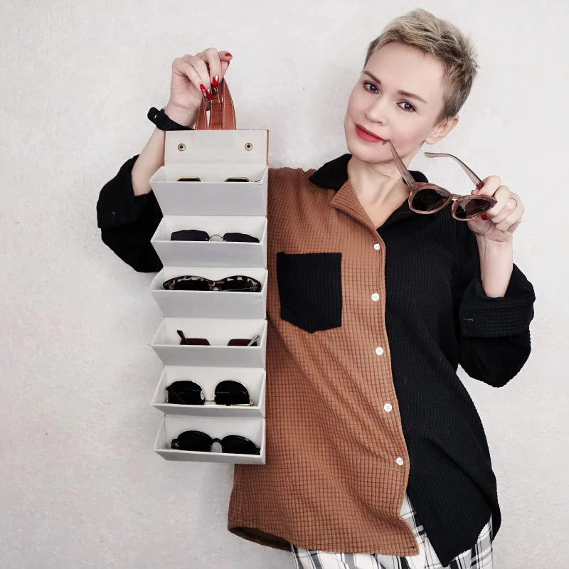 Ter um porta-óculos com 5 compartimentos oferece diversos benefícios, especialmente para quem possui vários óculos (de grau, de sol, esportivos, etc.).