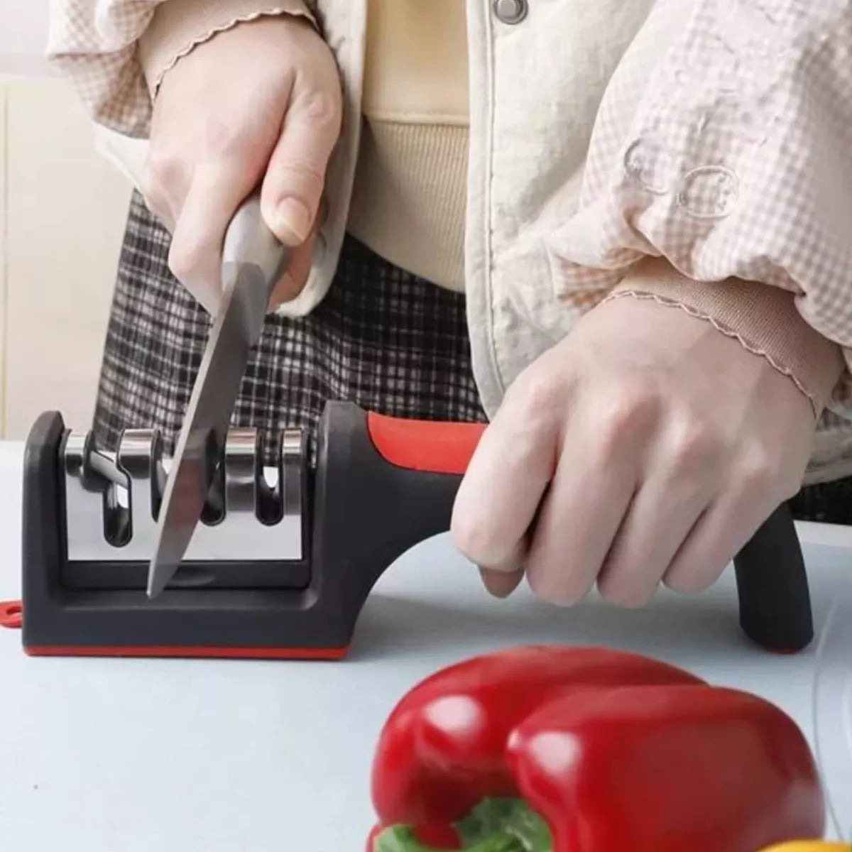 Com o afiador/amolador de facas, você pode restaurar facilmente o fio de suas ferramentas de corte em casa, economizando dinheiro e tempo. Além disso, com facas bem afiadas aumenta sua eficiência na cozinha, tornando o preparo de suas receitas mais rápido e agradável.