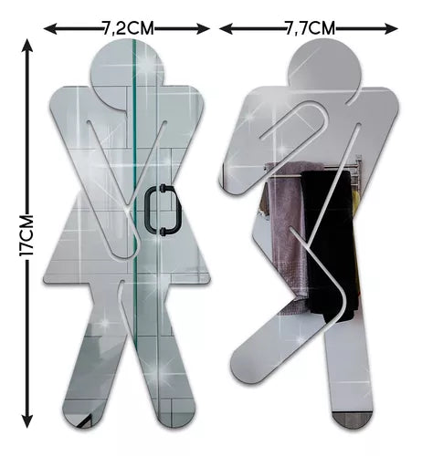 Este Espelho Decorativo para Sinalização de Banheiro é uma forma de você identificar o uso de ambos os sexos em um dos comodos mais usados de sua casa.