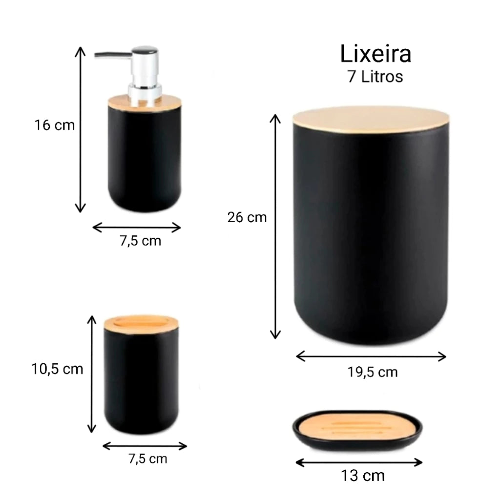 Transforme seu banheiro em um ambiente mais organizado, prático, elegante e moderno com estes Acessórios Banheiro BlackWhite Bambu !