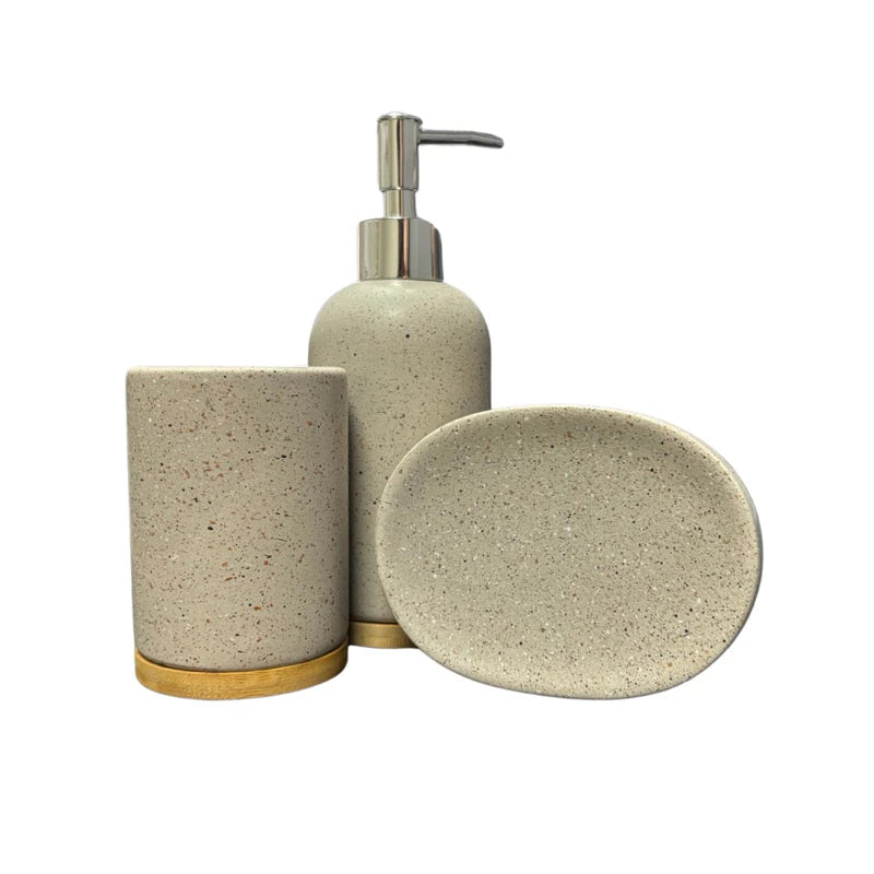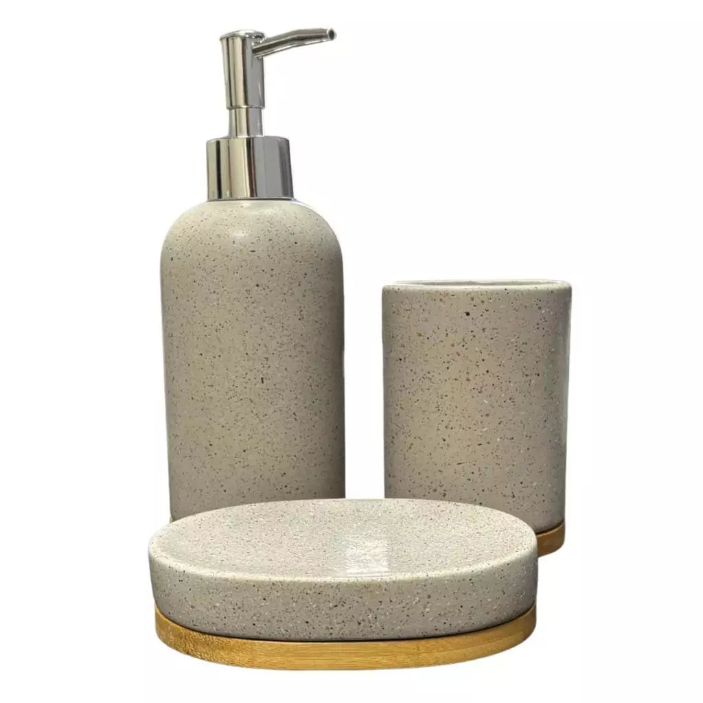 Dê um toque especial ao seu banheiro com nosso kit. Peças fabricadas em cerâmica, ele combina beleza e durabilidade, transformando seu espaço em um lugar acolhedor e estiloso.