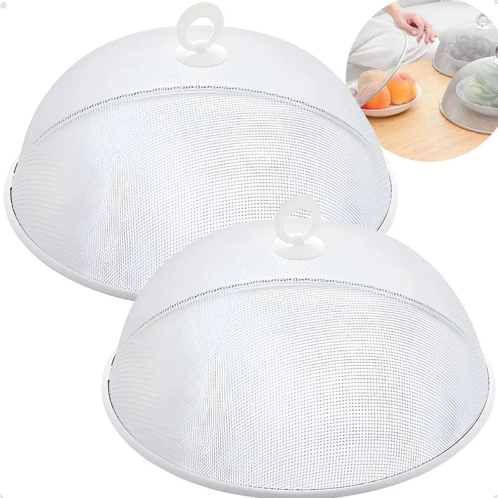 1) A tela protetora de alimentos redonda é a solução perfeita para manter pratos, frutas, bolos e petiscos totalmente protegidos enquanto estão expostos. 2) Feita em metal resistente, ela cria uma barreira eficiente que impede que moscas, mosquitos e outros insetos pousarem sobre a comida, preservando a higiene e a segurança dos alimentos. 3) Além de prática, é leve, fácil de usar e indispensável para refeições ao ar livre, churrascos, varandas, piqueniques ou até mesmo para o dia a dia na cozinha. 4)