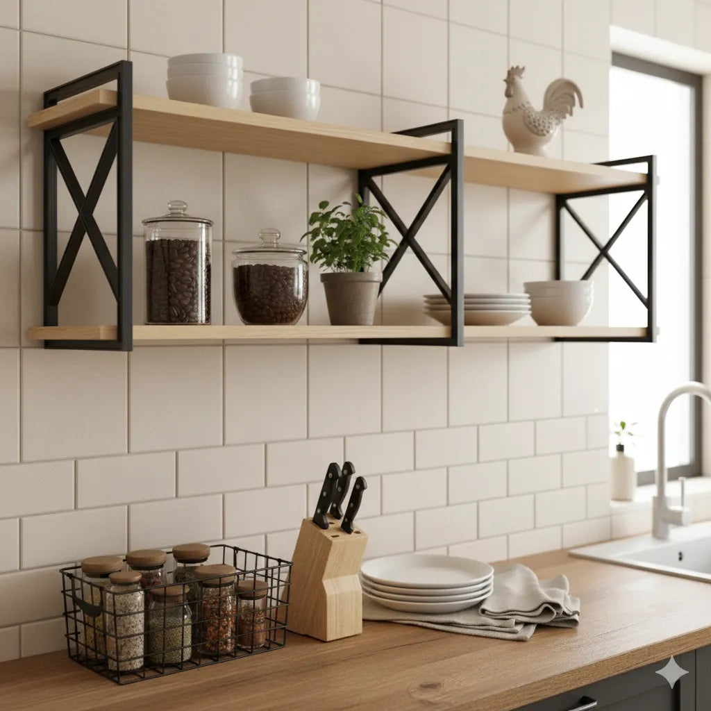 1 - Design Versátil: Combina o estilo industrial com um toque rústico, perfeito para diversos ambientes, como cozinhas, salas, escritórios, quartos e áreas de serviço.